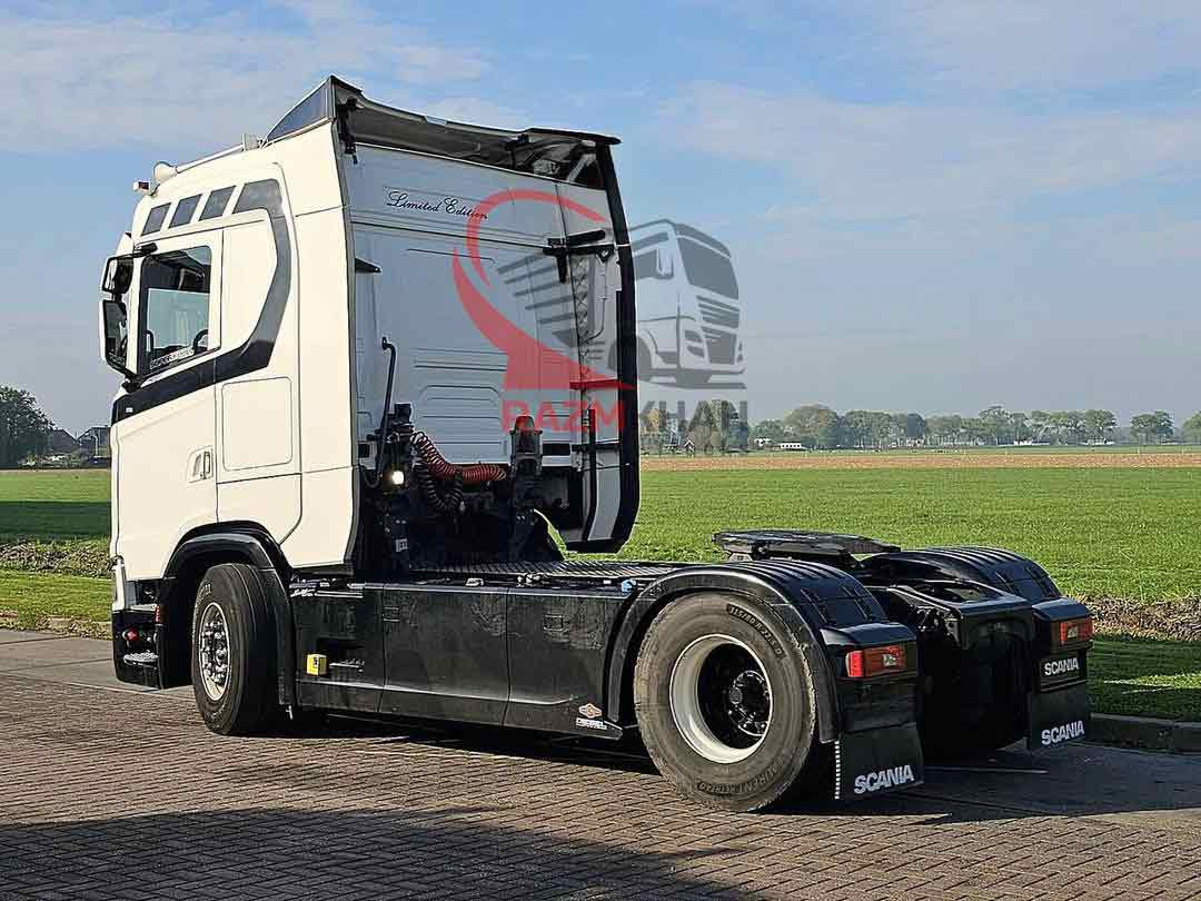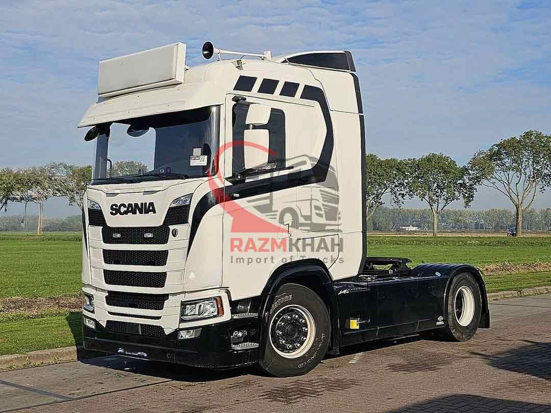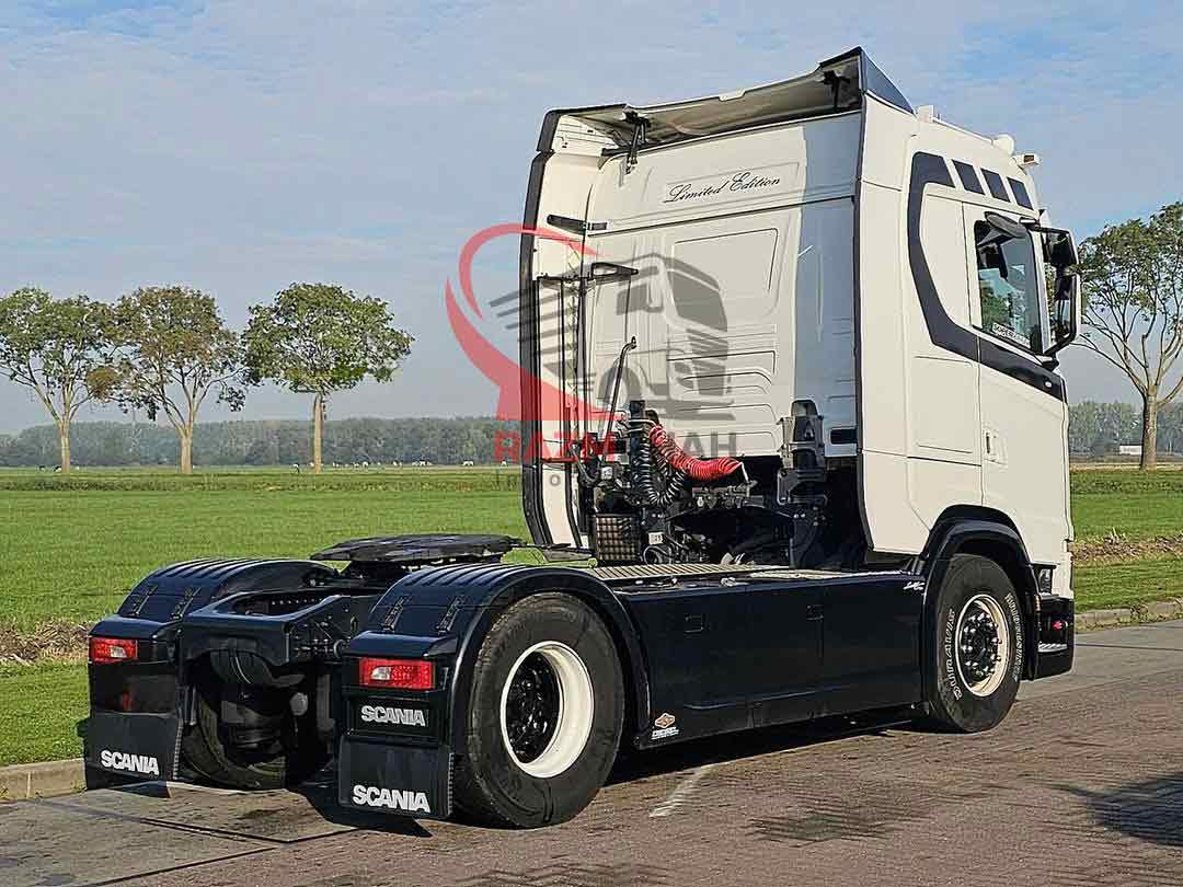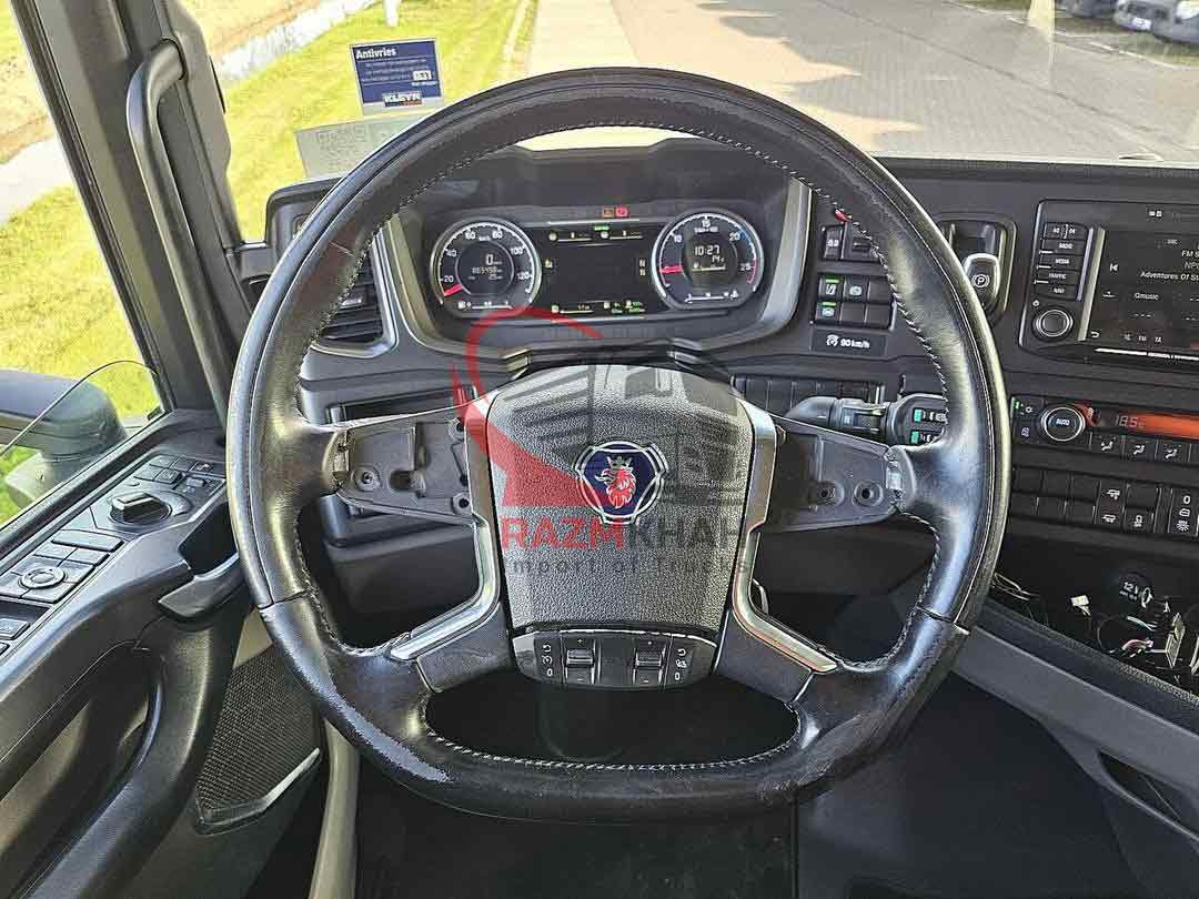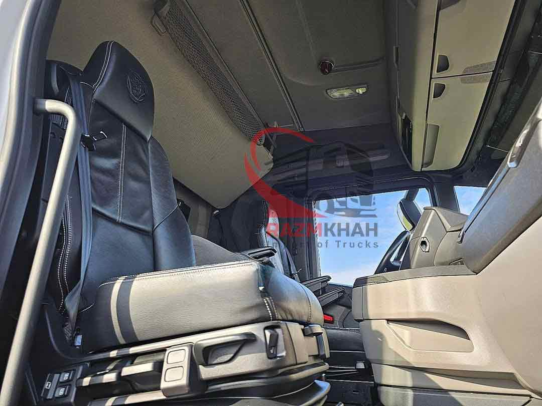 - باک سوخت دوم- سیستم ترمز کمکی- تاخوگراف دیجیتال- ثابت- سیستم تهویه پارکینگ- بخاری پارکینگ- کابین خواب= توضیحات =تعداد محورها: ۲، پیکربندی: ۴x۲، وزن خود خودرو: ۹۰۹۰ کیلوگرم، وزن ناخالص خودرو: ۲۰۵۰۰ کیلوگرم، ظرفیت کل سوخت: ۱۵۰۰ لیتر، باک سوخت دوم، ارتفاع چرخ پنجم: ۱۲۴ سانتیمتر، چرخ پنجم: ثابت، دیفرانسیل. قفلها: ۱، نوع سیستم تعلیق: تعلیق بادی کامل، نوع کابین: کابین خواب، کروز کنترل، تاچو، تاخوگراف دیجیتال، تهویه مطبوع، سیستم تهویه مطبوع پارکینگ، بخاری درجا، شیشههای برقی، آینههای برقی، رادیو/کاست، کارپلی، رنگ: چندرنگ، آینههای گرمشونده، نوع روشنایی: لامپهای LED، سیستم کمکی حرکت بین خطوط، سیستم تهویه مطبوع، بلوتوث، قدرت موتور: ۳۶۸ کیلووات (۴۹۳ اسب بخار)، نوع سوخت: دیزل، یورو: ۶، نوع گیربکس: اپتی کروز، برند گیربکس: اسکانیا، تعداد دنده: ۱۲، سیستم ترمز کمکی، برند ریتاردر: اسکانیا، فرمان هیدرولیک، ABS، ASR، باتری استارت، قفل مرکزی، چیدمان صندلیها: ۱+۱، روکش صندلی: چرم، تنظیم صندلی: دستی، NB، استندکلیما، چرم و غیره
